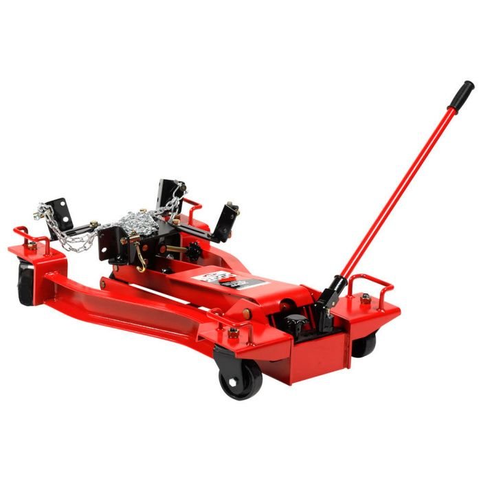 The AFF Low Profile Transmission Jack allows a service technician the ability to install or remove transmissions, differentials, and transfer cases. Ideal for light to medium weight truck transmissions. The low profile style provides superior clearance and the wide high-grade alloy steel wishbone frame design provides for efficient load distribution and increased stability. The 4-way tilting head allows easy positioning for installation and removal of transmissions and the fully adjustable universal saddle with adjustable arms allows easy positioning. This is equipped with a safety overload bypass and a long handle that pivots 360° around the pump.