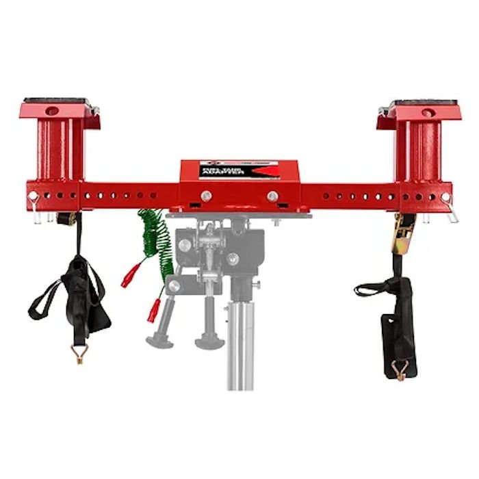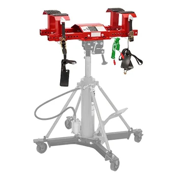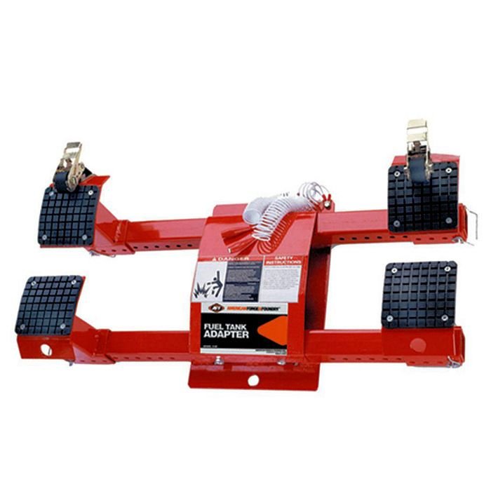 The American Forge & Foundry Transmission Jack Fuel Tank Adapter allows for quick and convenient removal and installation of fuel tanks with a transmission jack. Features pin-type post that adjusts to seven height positions from 19-3/4″ to 31-3/4″, rubber padded 4″ x 5-3/4″ diameter saddles, four support risers, and a convenient carrying handle. Includes two safety straps and two grounding cables. The standard AFF (1) Year Warranty applies to over 300 service centers nationwide.
