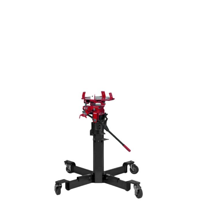 The Challenger Lift high-rise automotive transmission jack features the most flexible, usable and safe head-plate design to boost productivity. This 1,200 lbs. capacity transmission jack features a two-stage design: the first stage is 100% air-operated for speed, while the second is hydraulic for precise control. The swivel casters make for easy maneuverability, and a nylon “speed strap” is included to secure the load quickly and conveniently. The heavy-duty, acme threaded screws provide a more excellent bearing surface for easier tilt adjustments. The four quick-ratcheting brackets make the head-plate flexible and easy to use.