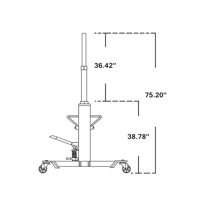 - Foot operated two-stage hydraulics allow for precise load control as well as rapid lifting abilities